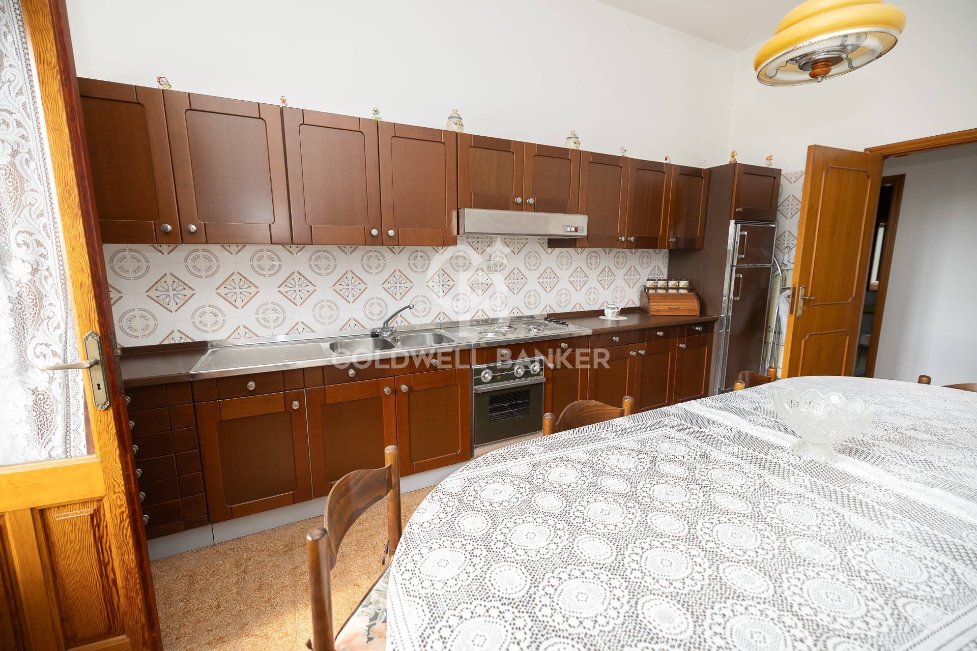 Al piano primo si compone di un grande salotto, cucina abitabile, quattro camere, due bagni e una veranda con vista sulla campagna circostante.