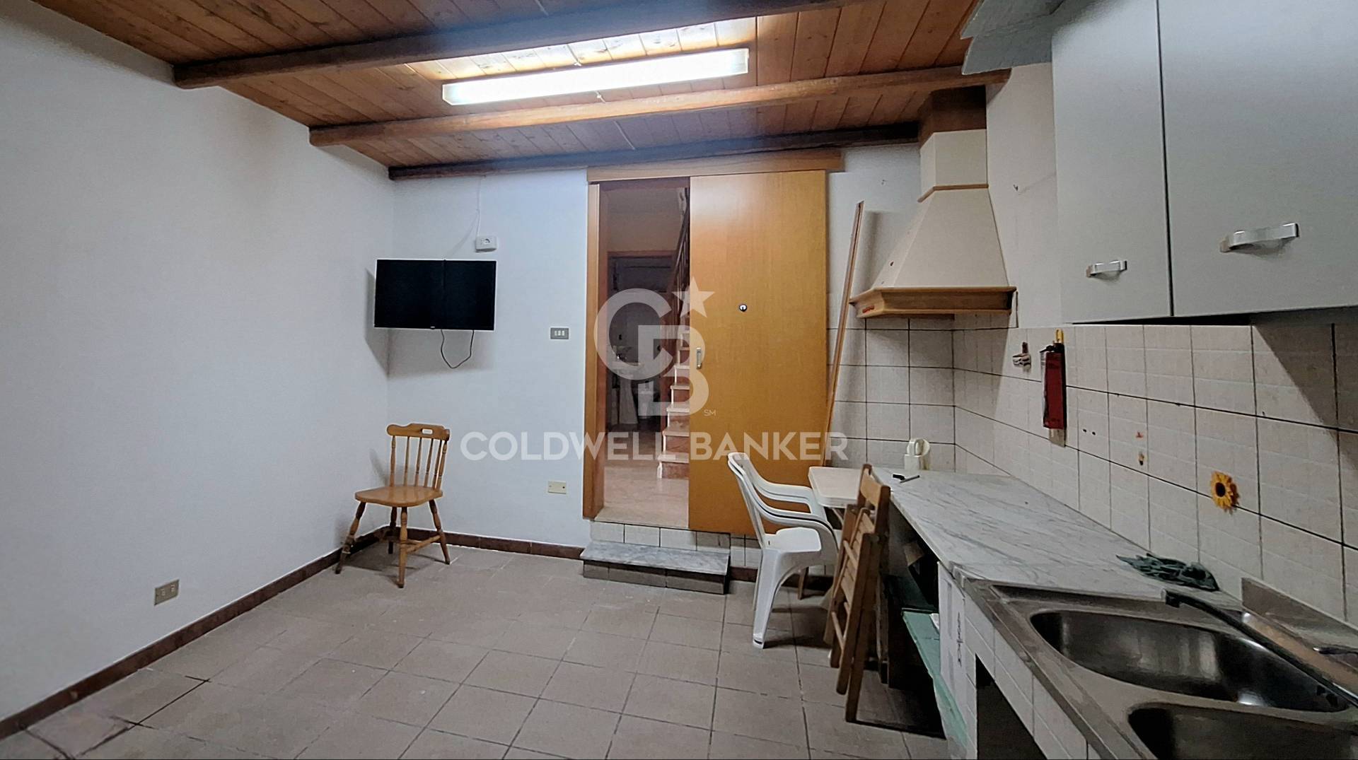 Al piano terra troviamo l’ingresso, un accogliente soggiorno, la cucina, un bagno e un ripostiglio con vano pozzo luce; completa il piano un comodo garage, collegato internamente all’abitazione.