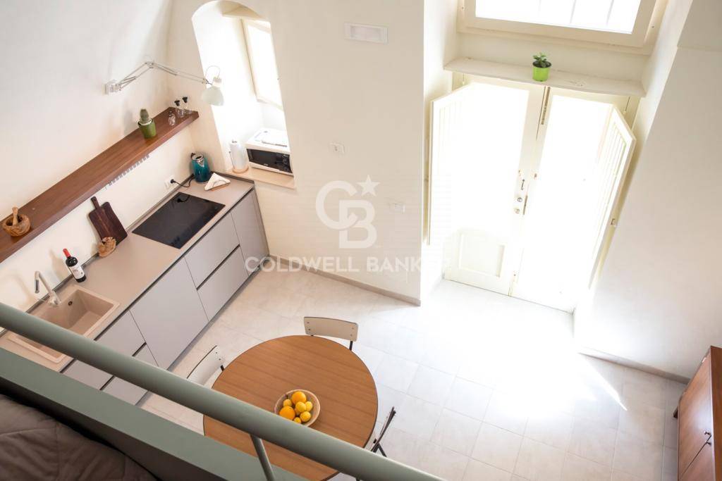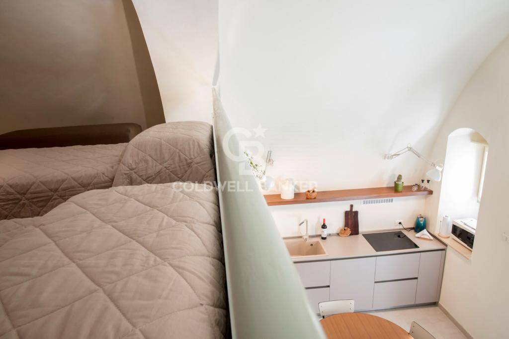che offre una vista suggestiva sulla sala da pranzo sottostante, creando un’atmosfera unica e accogliente.L’immobile viene venduto completamente arredato con pezzi di design moderno, garantendo un’atmosfera elegante e contemporanea.