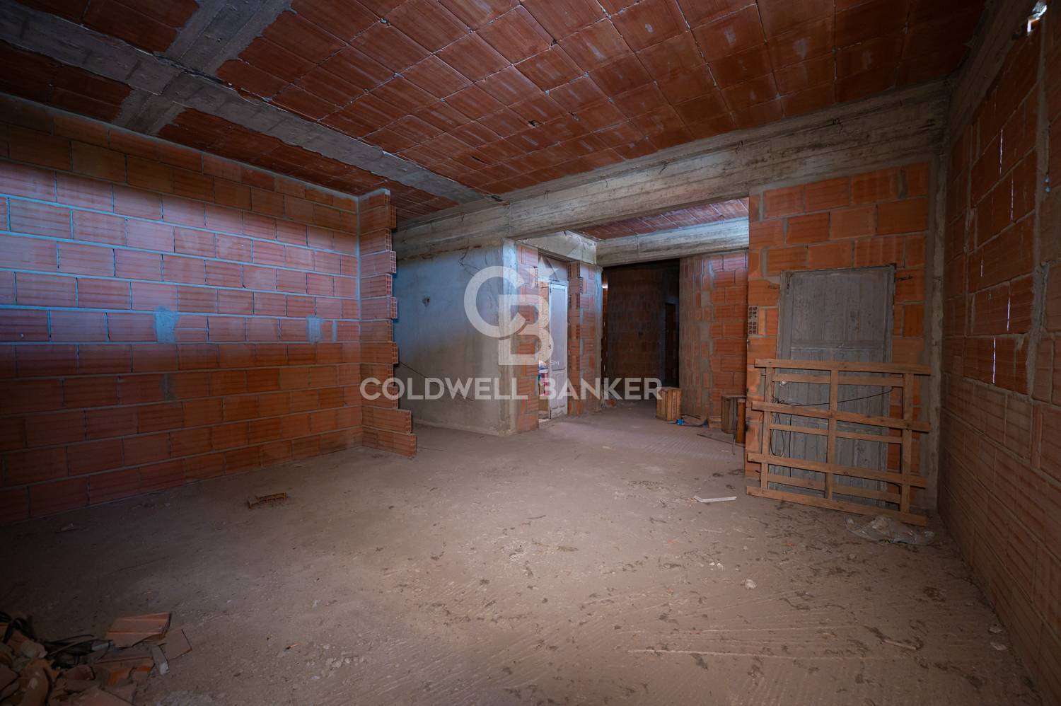 La proprietà fa parte di una palazzina bifamiliare, composta da due appartamenti di cui uno già abitato, sito al piano primo. Il piano terra è composto dal vano scala e da due ampi garage di circa 60 mq l’uno, uno dei quali può essere acquistato con trattativa a parte, non essendo compreso nel prezzo di vendita dell’appartamento.