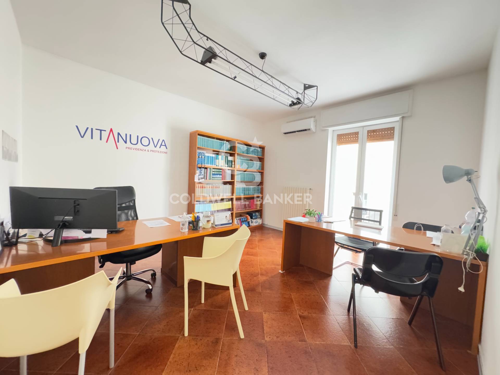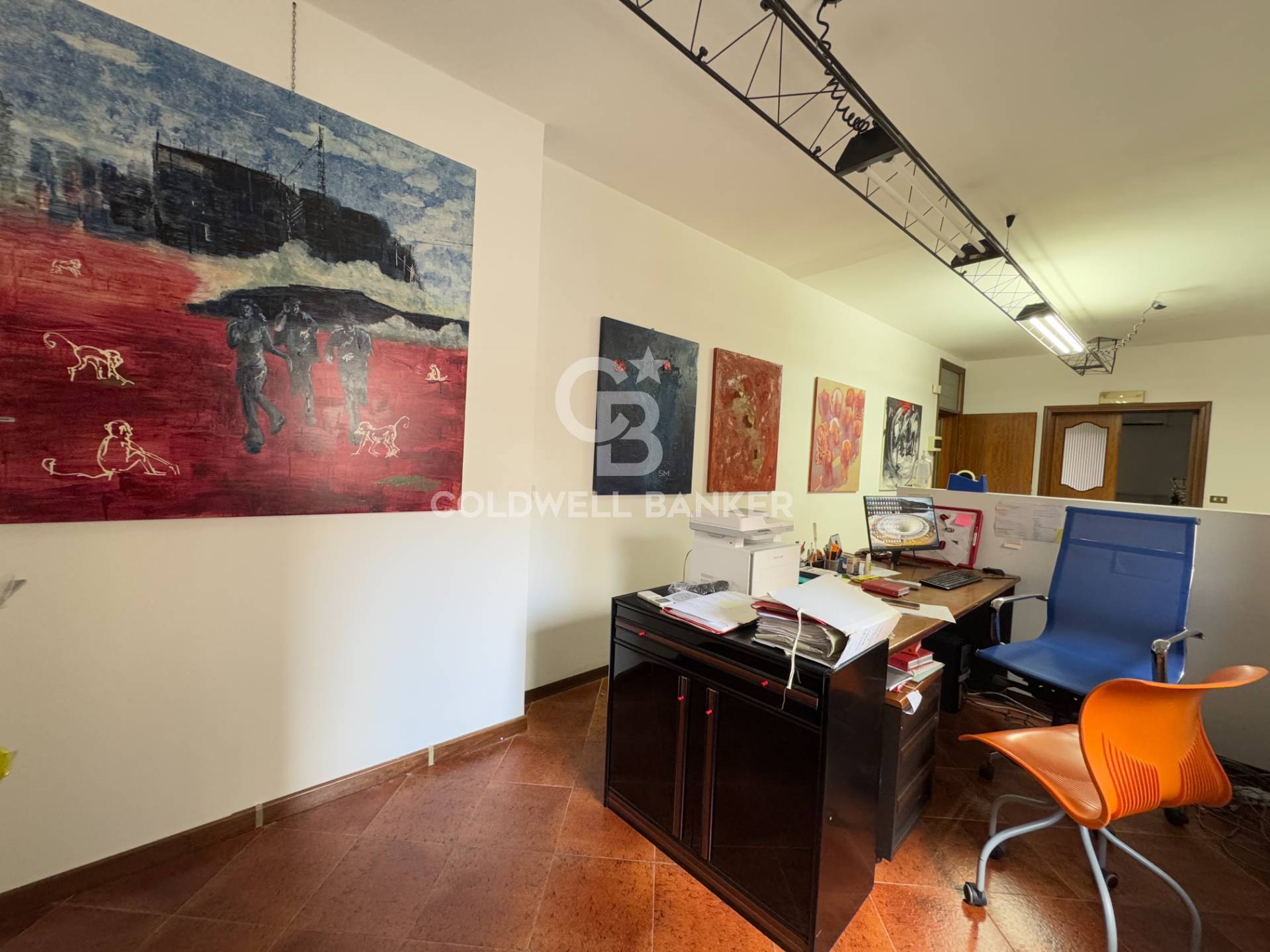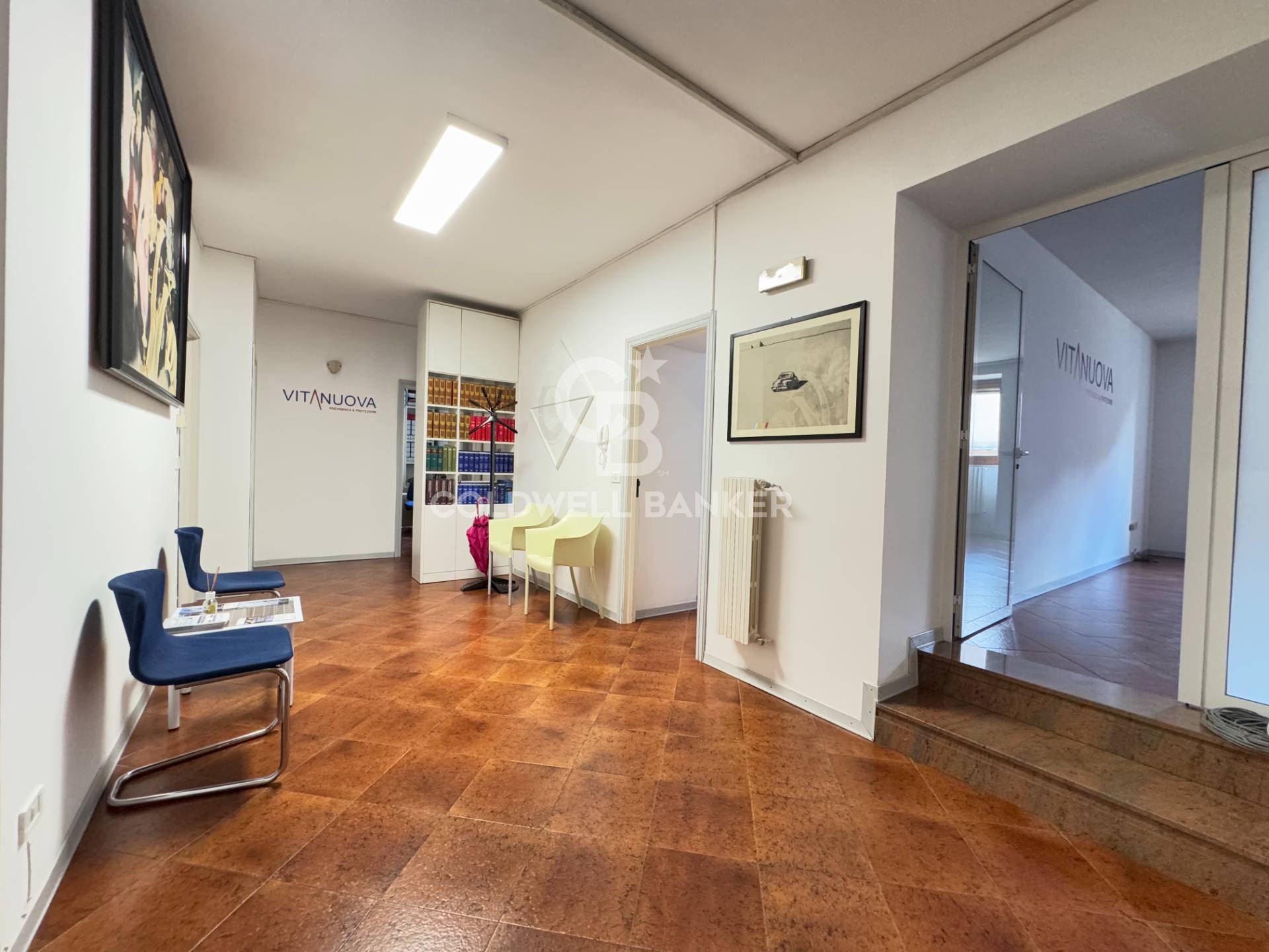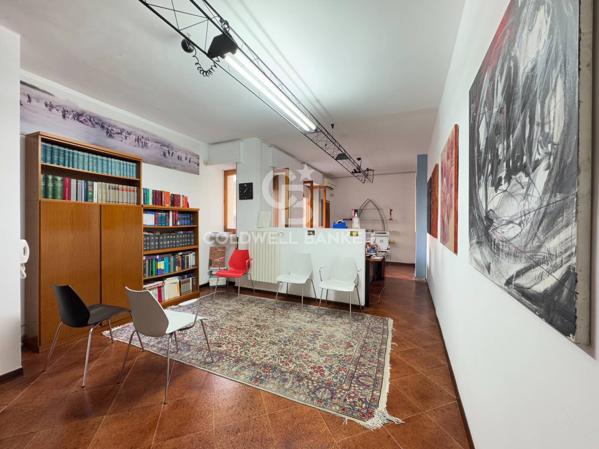 Questa soluzione immobiliare è attualmente divisa in due unità autonome, con ingressi separati, adibite ad ufficio e studio professionale.