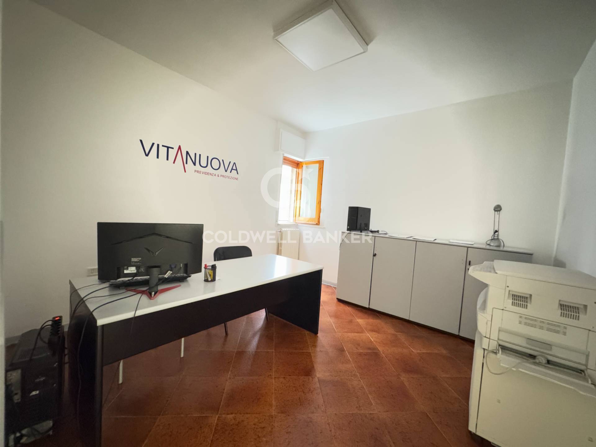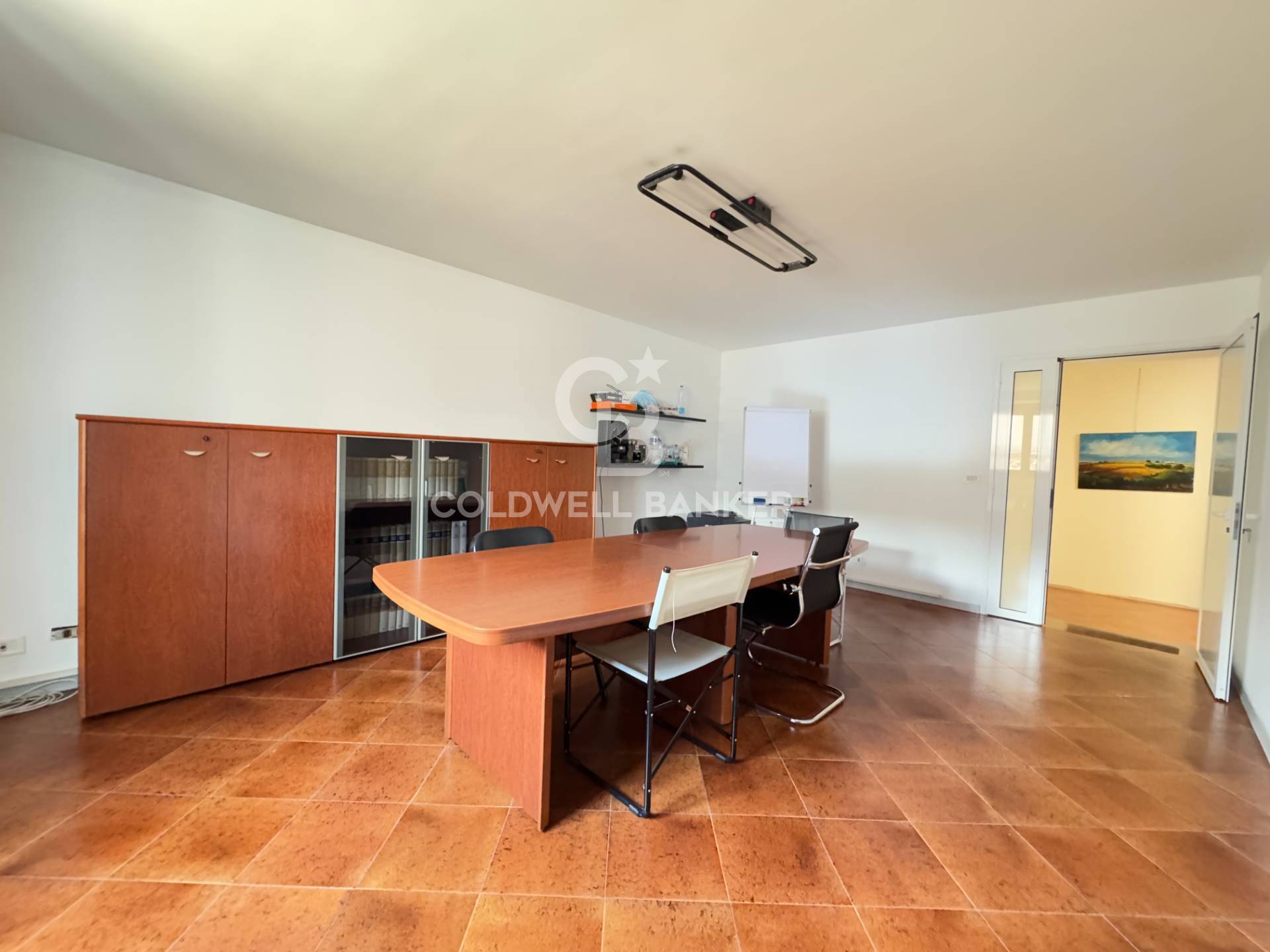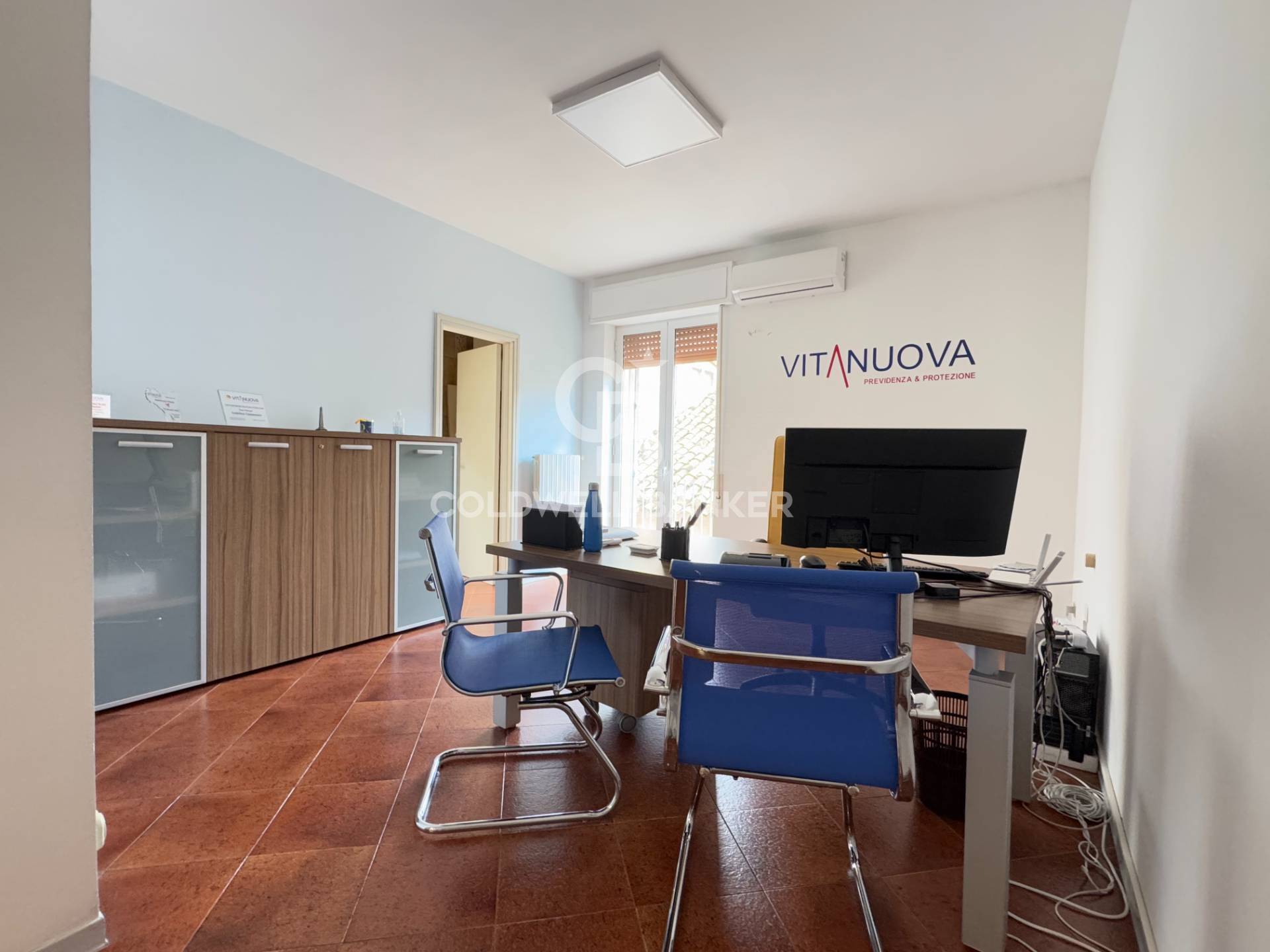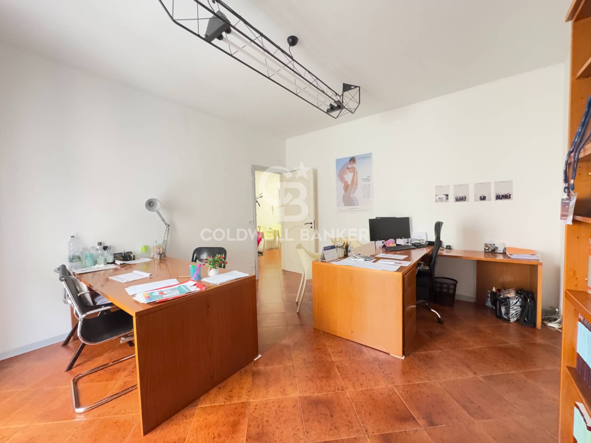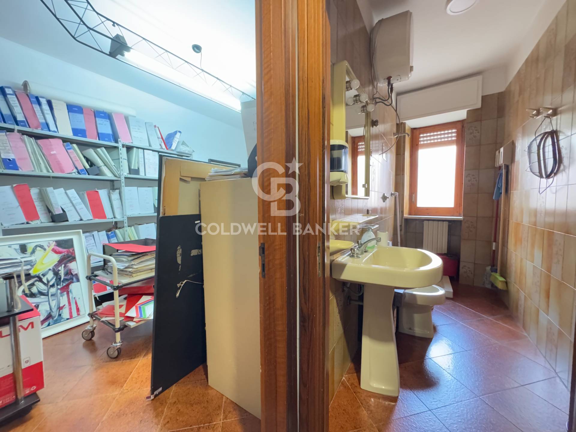 Questa soluzione immobiliare è attualmente divisa in due unità autonome, con ingressi separati, adibite ad ufficio e studio professionale.