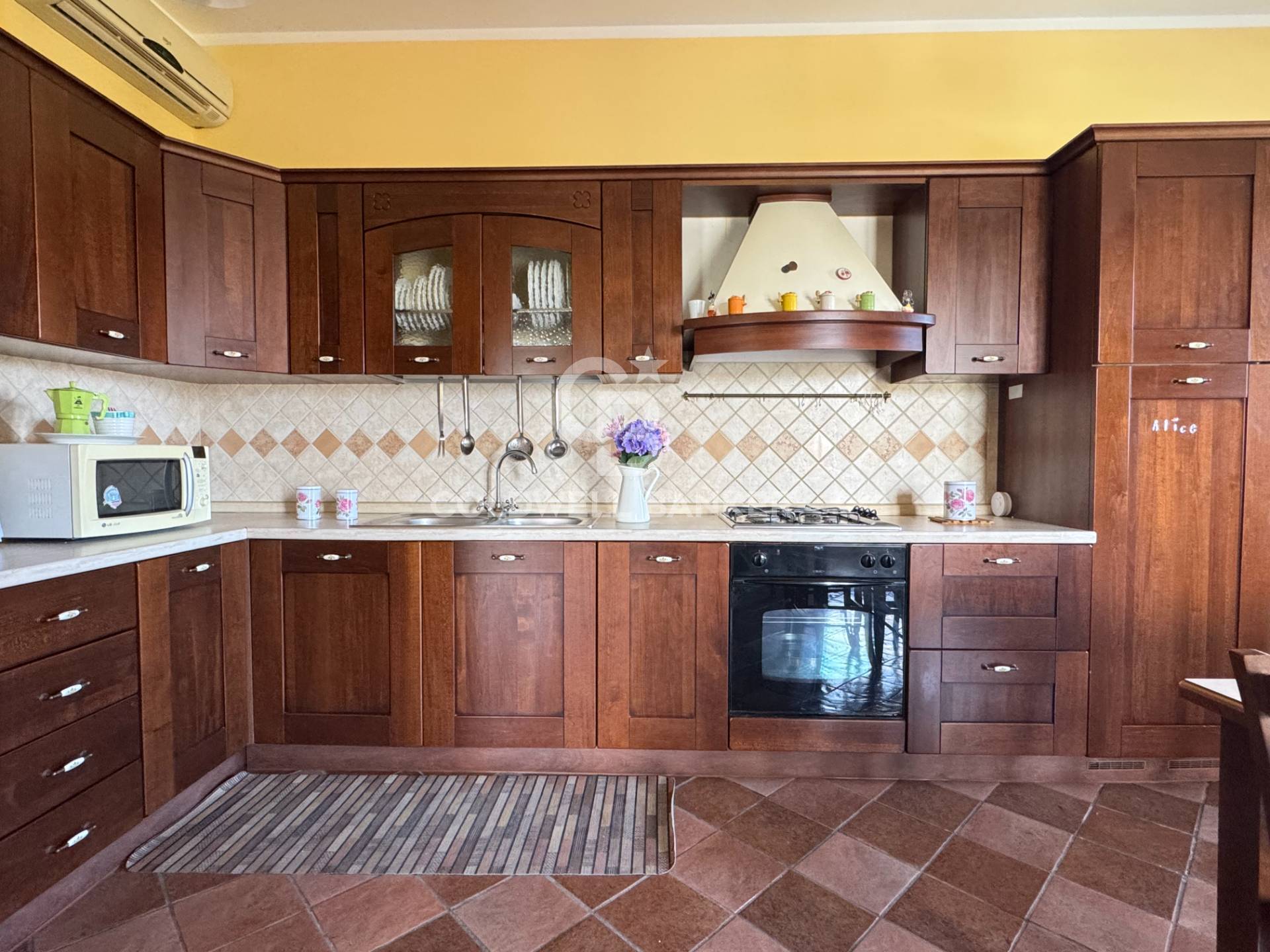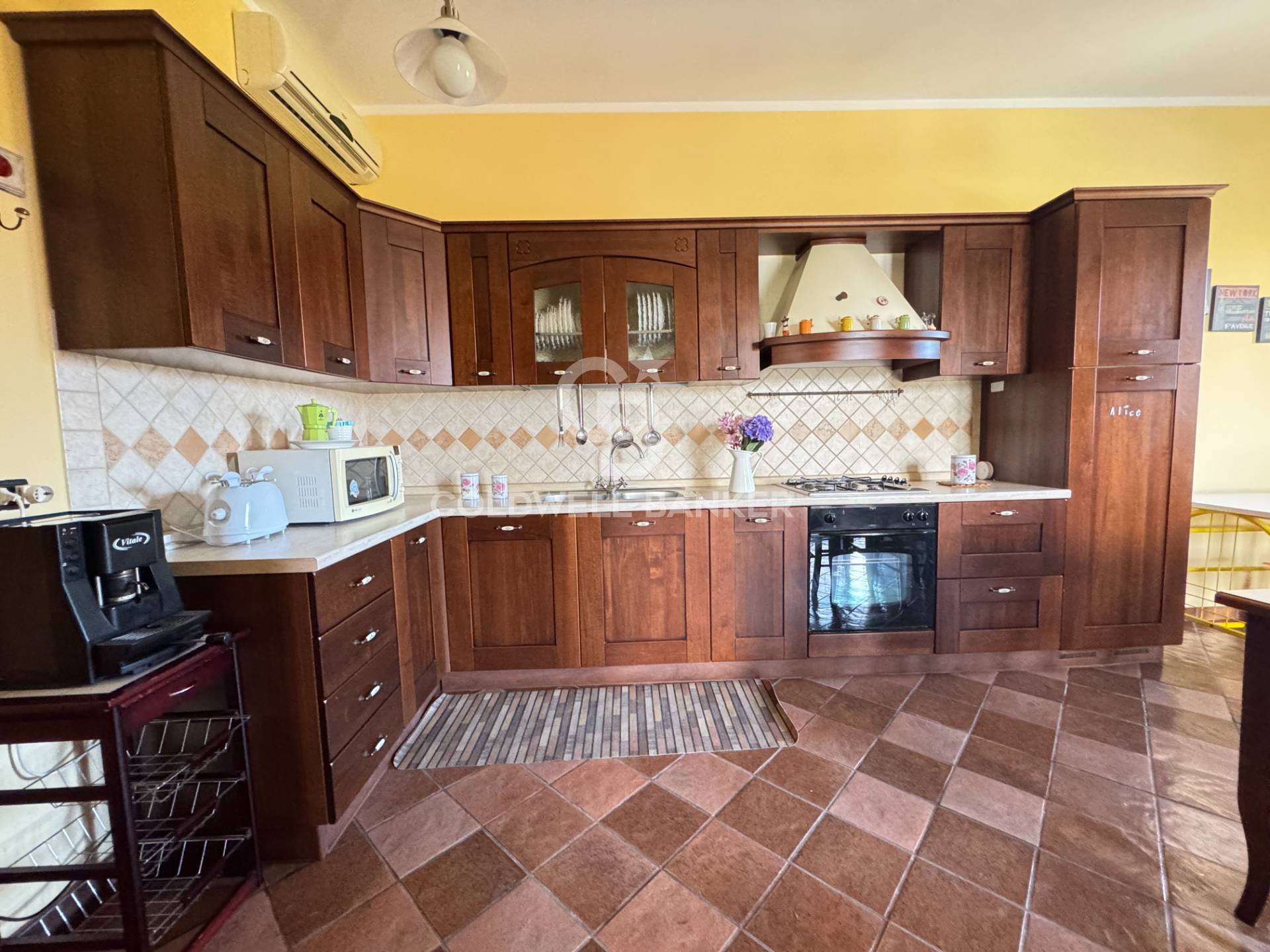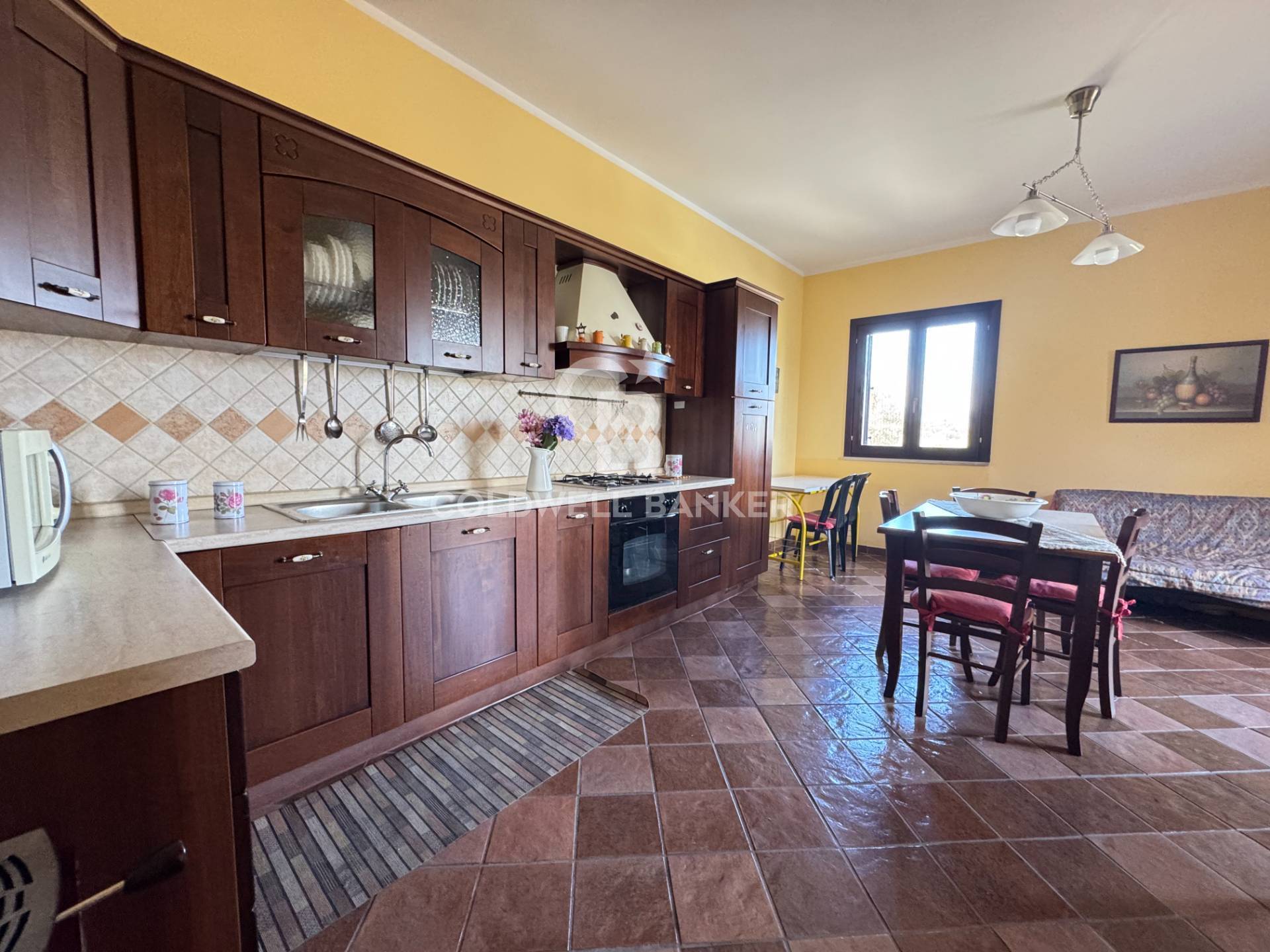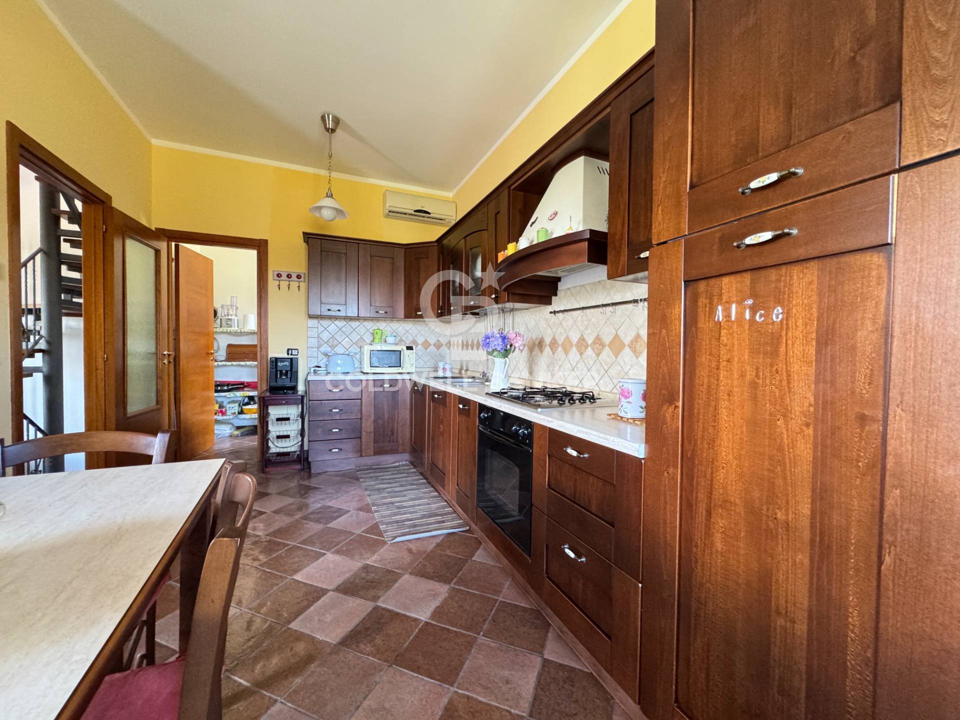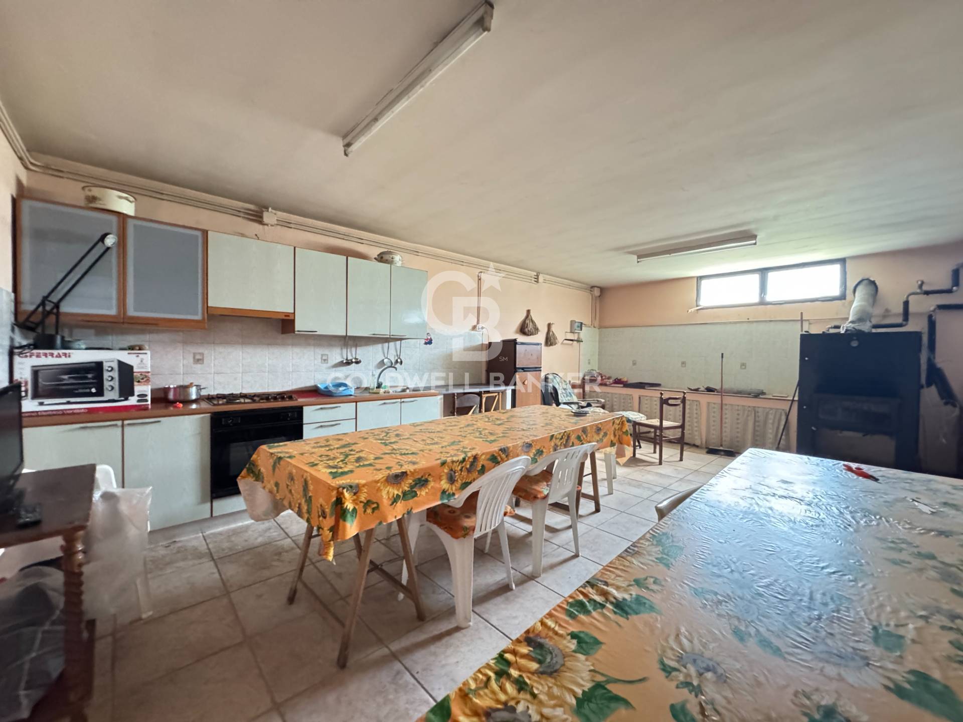 A completare l’unità una spaziosa taverna con servizi, attualmente adibita a cucina rustica con forno.